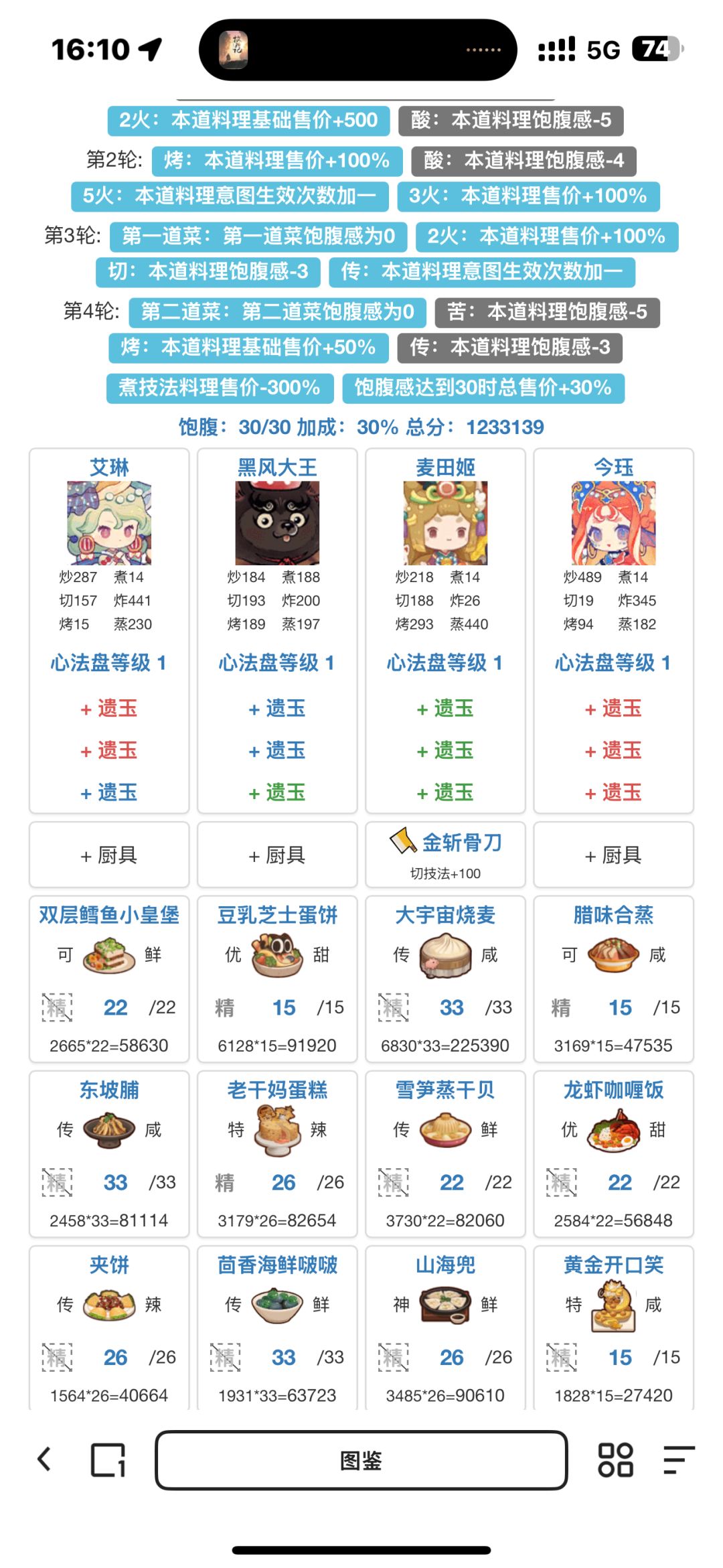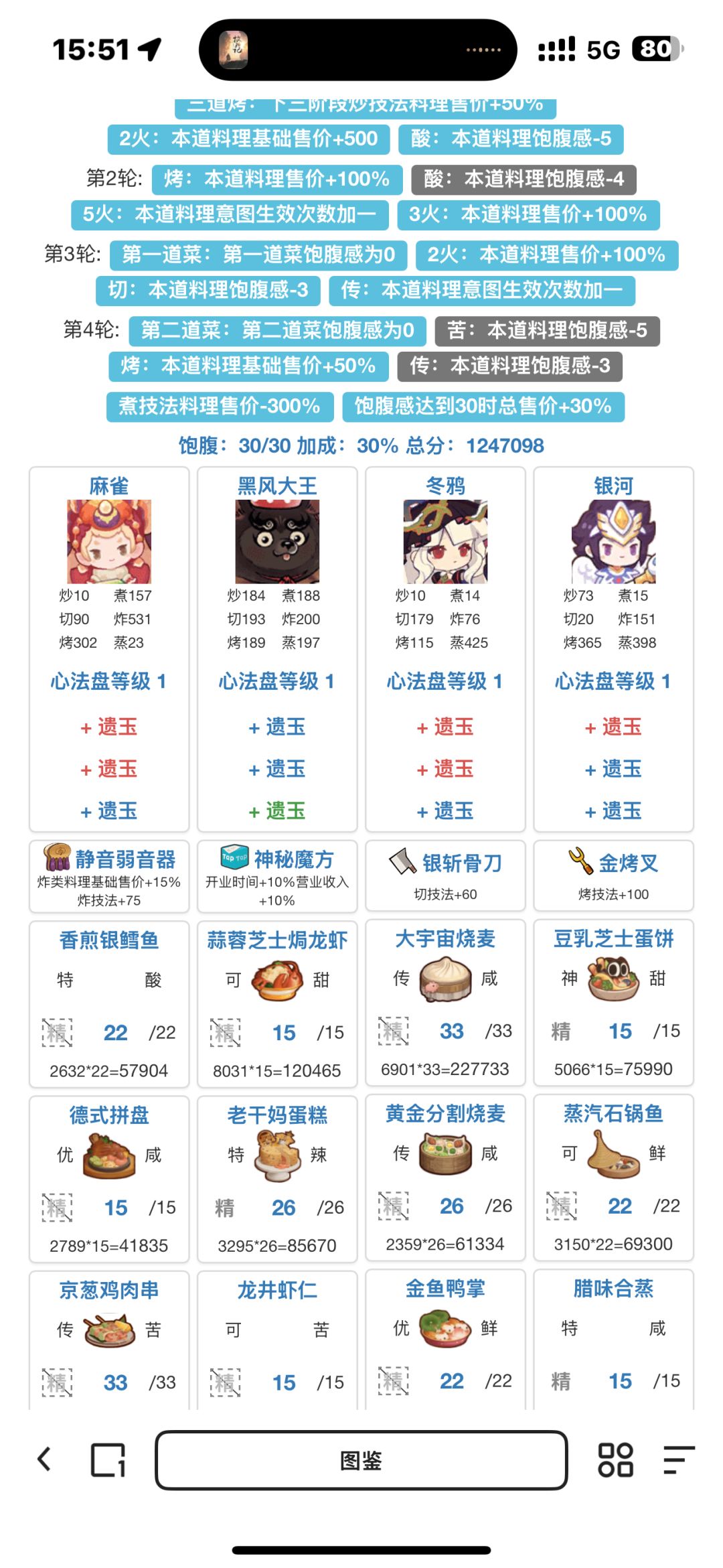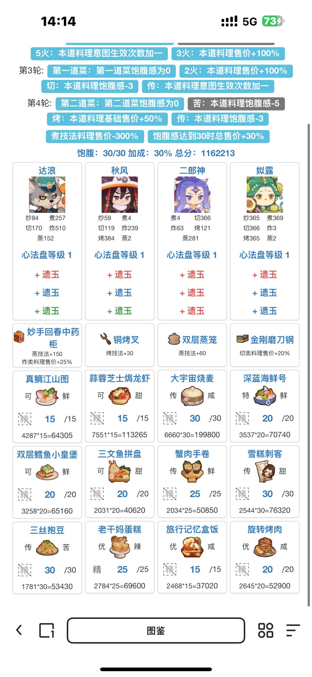 第三轮可以用这次的二郎神或者上次的冬鸦,需要根据情况带厨具把大宇宙烧卖做到传吃双倍意图