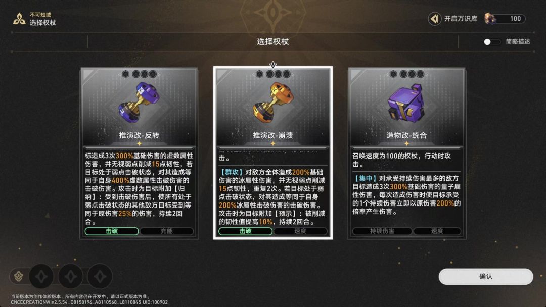 因此,实战中一般我们是带【推演改·崩溃+空无+封闭】,并给前两个【速度】权杖带点速度加成以保障它们能及时给敌人挂上对应的debuff。 而在组件方面,提供击破伤害相关增益的组件是崩裂/归零/惯量/劣化计时。其中,【劣化计时】的效果是固定的,所以可以装在一个低增幅权杖上;
