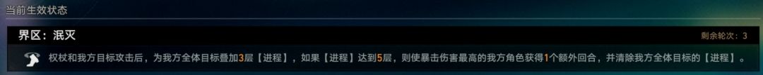 众所周知:【洗涤模块】会在权杖和我方目标进行攻击后叠一层【进程】,叠够5-8层(具体看组件等级)的时候,可以给我方爆伤最高的角色提供一个额外回合 —— 也就是说,全队加权杖攻击5-8次后可以获得一个额外回合。