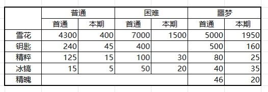 大背景,游戏的雪花产出有限。第一,每天观影礼包给100雪花,日常任务给70雪花,普通联合作战刷新一个月4次,雪花产出400;困难刷新一个月2次,雪花产出1500;噩梦一个月产出10/7次(用30除以21),雪花产出1950。那么一个月(按30天)固定产出就是:30×100+70×30+400×4+1500×2+1950×10/7=12485雪花。第二,因为1k钥匙平均能抽出1k雪花,每天恢复的精力是96点,免费25点,可购买150点,总精力271点,打满副本按困难难度可获得1016把钥匙(排位双倍会获得更多钥匙)。那么一个月就是30487把钥匙,换算雪花同样。第三,主线推图一节给320雪花除去CD时间,一个月也是给4K雪花。这样算下来一个月的雪花产出固定是30487+12485=42972个雪花,再算上7天签到的100×4=400,其他小活动、更新补偿、福袋、礼包码给的蚊子腿,大概算下来就是4.8万至5万雪花。因此: