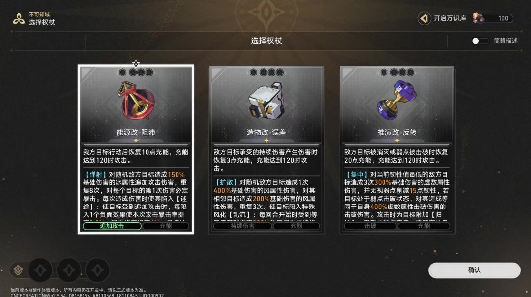 配队/权杖方面显然最好是带终结技相关的权杖和角色以方便自动战斗AI操作——例如【进化改-极端】【能源改-饱和】之类的,还有终结技比较便宜且能够连续释放的飞霄、黄泉、佩拉等。