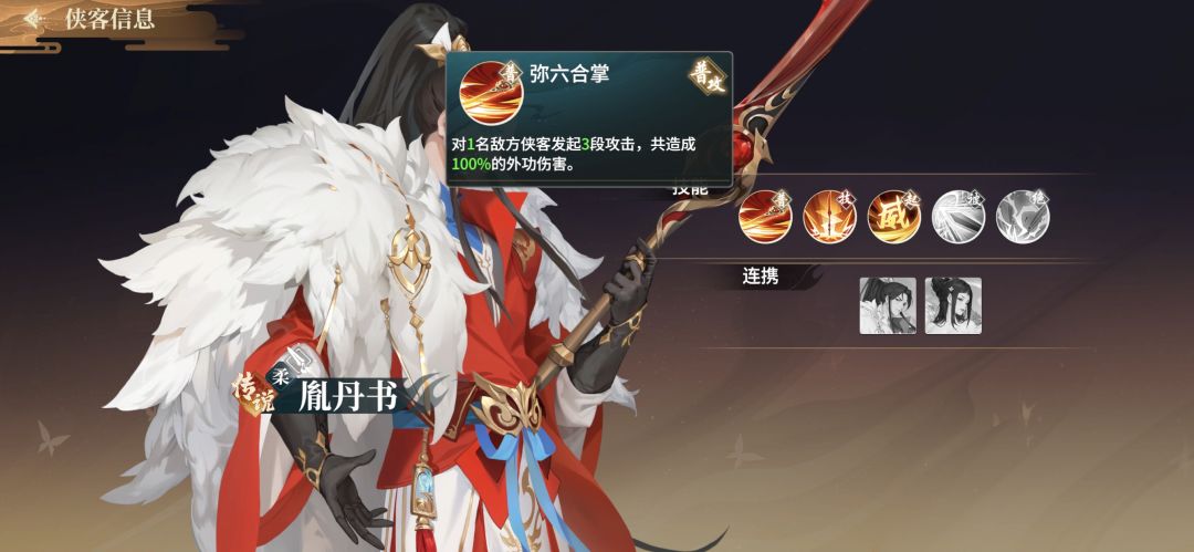 1、第一回合,普攻一次100%外功,两次大招280%*2外功伤害,打前排单体。两次赤心三元40%*2外功伤害打敌方攻击最高。第一回合积累6层元,释放两次赤心三元40%*2外功伤害打敌方攻击最高,运气好的话眩晕一回合。