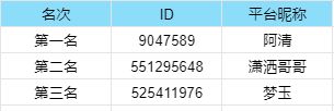 感谢大家对我们此次活动的支持,现在公布获奖名单如下,请获奖的玩家联系客服QQ(QQ:3992939807)领取活动奖励,后续我们会继续推送更多的福利活动,祝大家游戏愉快!