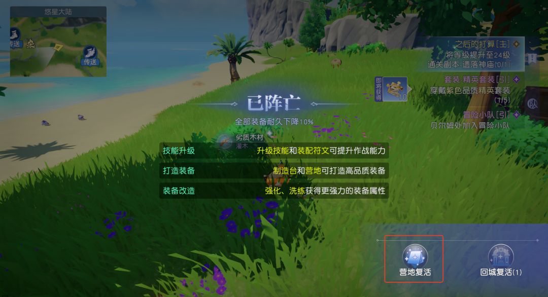 这也是营地最重要的功能,能让你快速回到战场,省去了跑图的时间和传送的损耗。(当你在望海城附近不慎阵亡,复活之后回到哈夏镇,你就知道它的含金量了~)