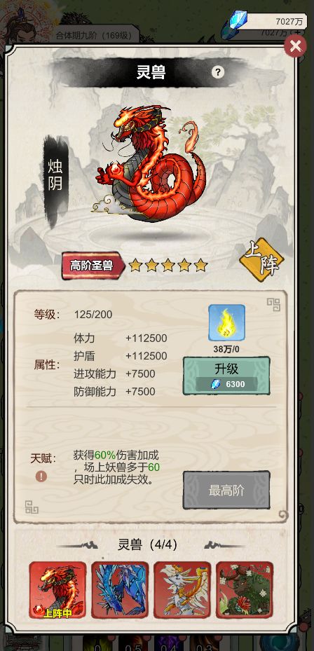 1. 新增"灵兽"玩法,通关15关后开放,本次新增四只灵兽,每个灵兽会有几个形态可以养成升级且有各自的天赋,同时也能伴随主角出战