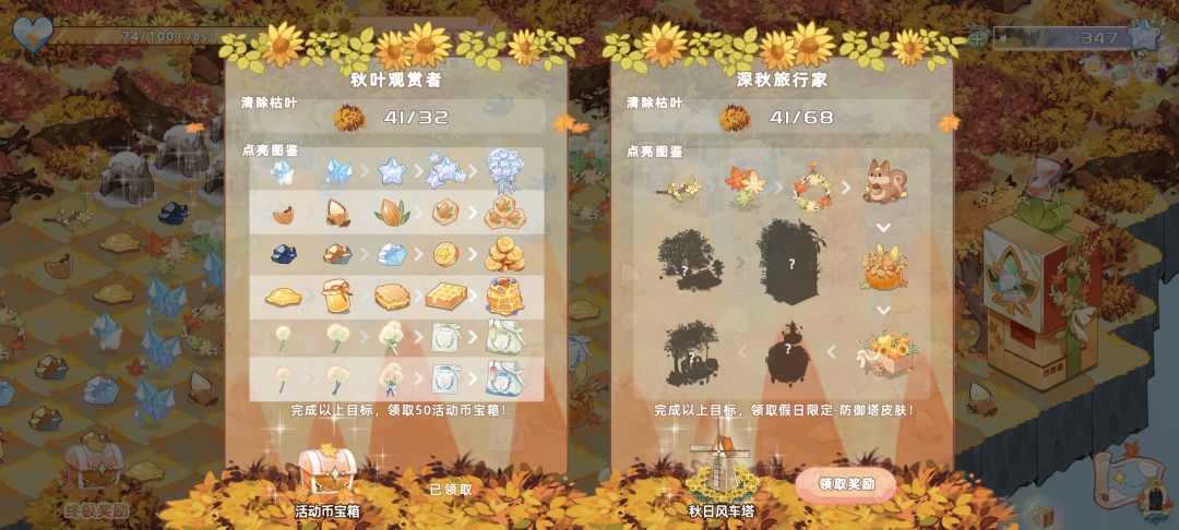 2.游戏详情页-活动(图1),有公测礼包码、签到礼包码、邀请礼包码(图2),其中邀请礼包码的奖励最丰富(图3),有秋日风车塔(秋叶岛最终奖励同款)(图4)、头像框和1500金币~