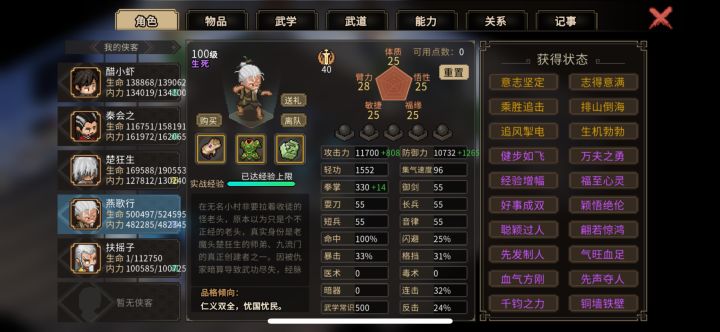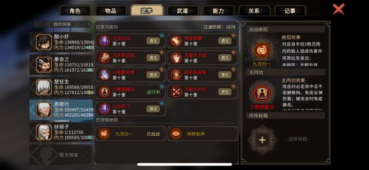 众所周知老头门最后楚狂生和燕歌行会修为尽失,然而更新的mod可以复活死去的npc让其回到初始状态,这并不影响武功,所以我们可以把2老头拉进队毒死,再用邀请修改器复活拉进队,这样除了武道点和技能点需要重新点之外就没什么问题了,当然还会掉仁德和义气🤓👍