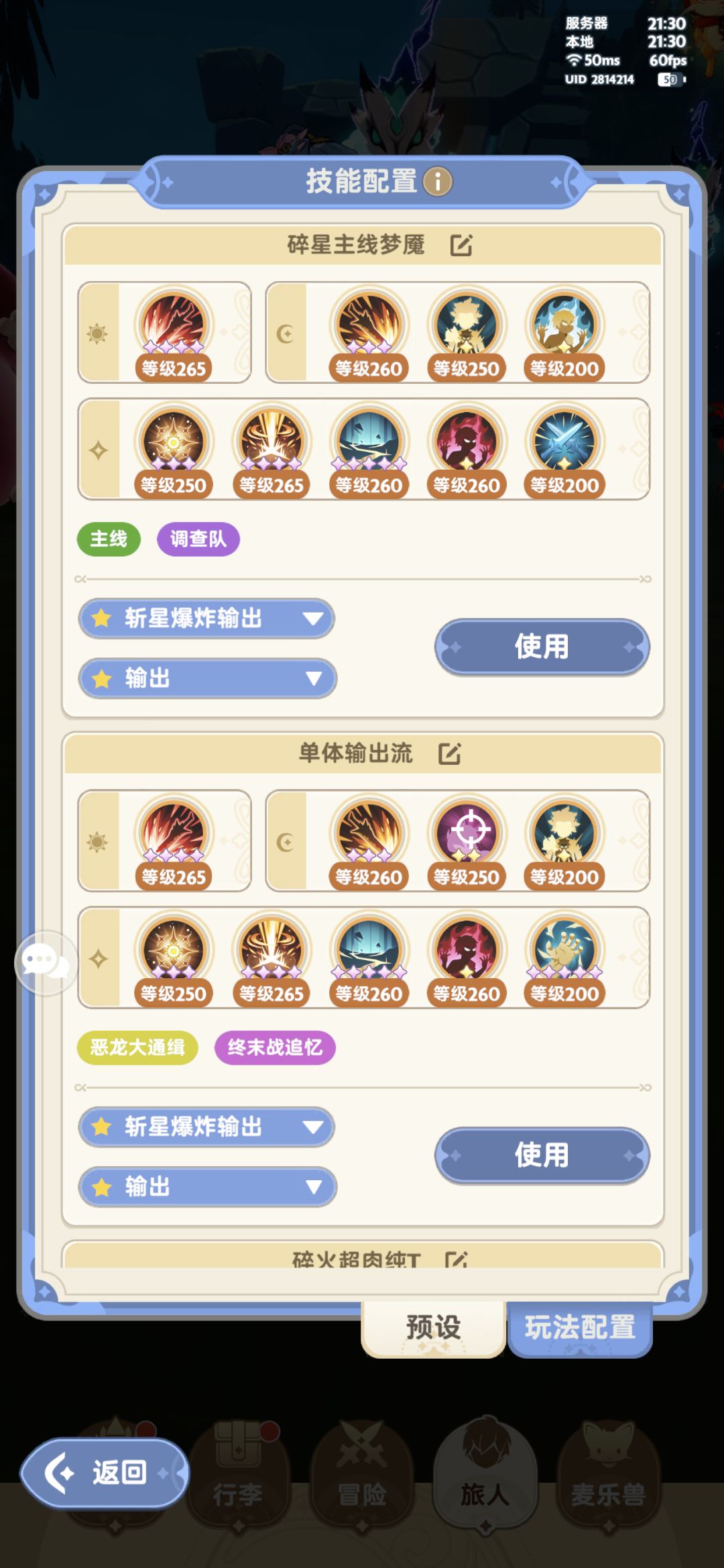 🗡️主线,调查队等:随便带,星陨根本打不出来,主线目前是一下秒,核心占比极高,所以追求更快速度可以考虑把被动星陨换战术优势