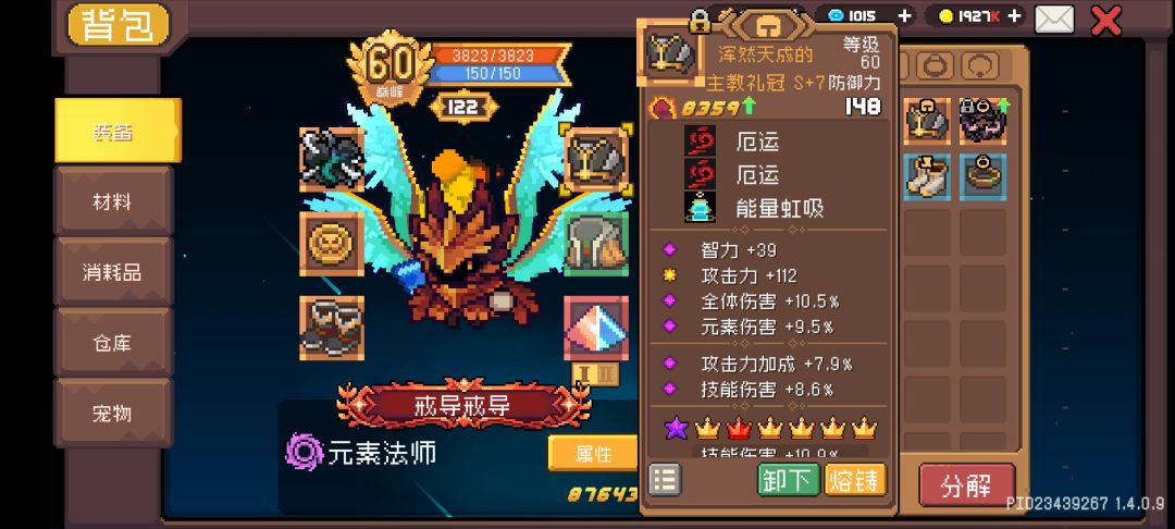 帽子:主教礼帽,没有护盾+20%免伤,有护盾+50%增伤!还记得我们点满了火焰护盾吗?就是为了这顶帽子!相当于永久50%增伤!(之前因为火盾技能有BUG无法触发盾,导致帽子没用,不过别担心,当你看到这篇攻略的时候它已经修复了)看我这顶帽子怎么样,刷了一下午
