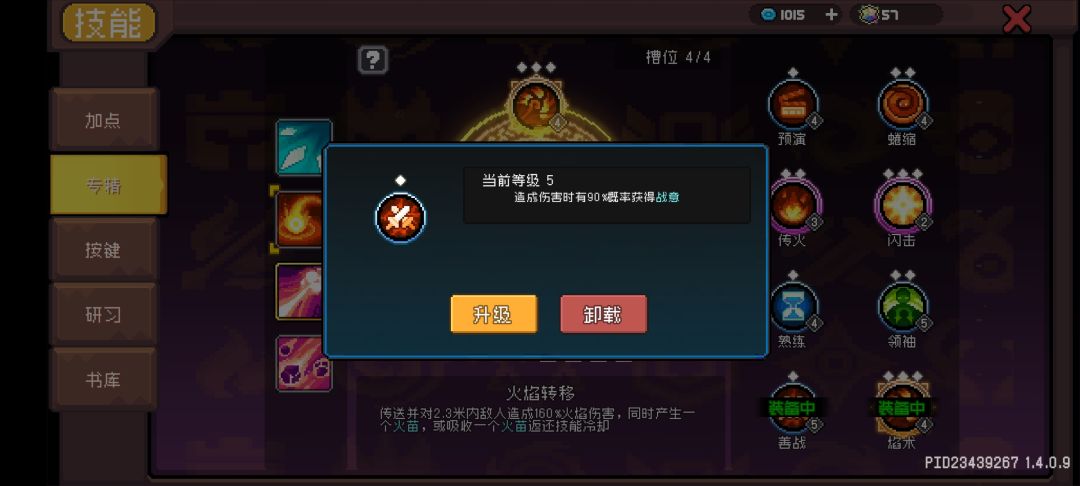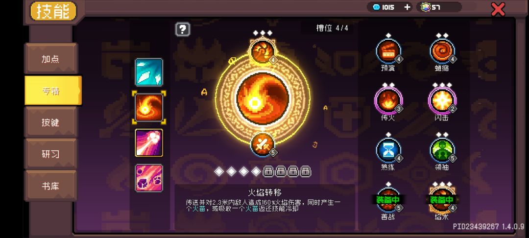 然后是另一个专精技能——火焰转移,这个也很重要,因为他的专精——“善战”。善战可以叠加战意,上限10层,可提供50%高额增伤,这是原本只有战士才能有的战意类技能,现在火法也有啦!而“焰术”专精可增加火球术,加上分裂羁绊就算脸黑也基本两三个火球术就能叠满战意,相当于永久50增伤!所以,必须点!