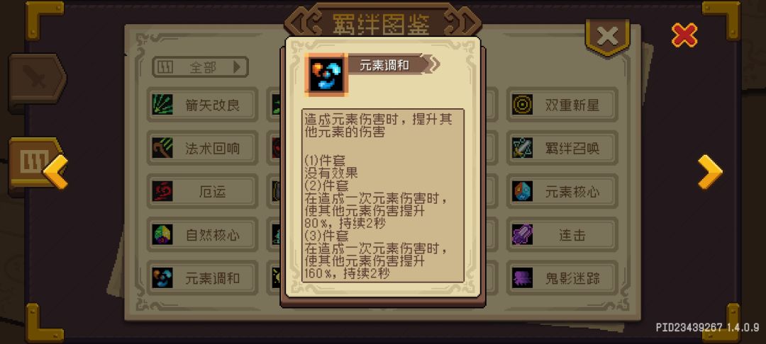 计算所有装备3羁绊+武器芯片羁绊总羁绊数可达到24个羁绊位置,相当于8个3级羁绊。必带3疾风骤雨、3元素调和(这个羁绊只能锻造才会出现)、3元素核心、2-3分裂,2-3能量虹吸(最好3觉得蓝够就带2),剩下可选3厄运、2-3生命吸取(推荐至少带2吸血,防暴毙)、致命节奏(激光攒层数,用陨石触发层数)。