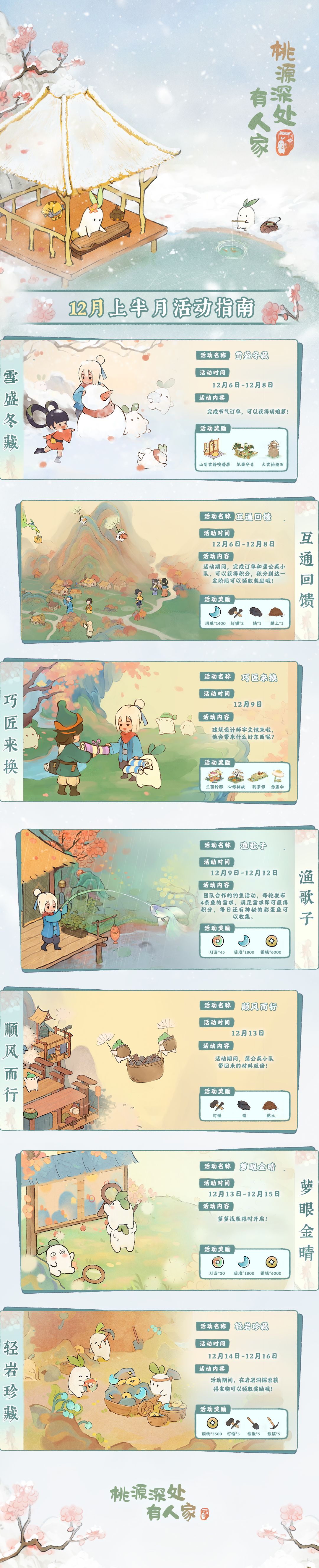 各位萝萝山的山民好呀!山民在游玩紫禁主题限时活动时也不要错过常驻活动哟!小花给大家整理好了十二月上半月的活动日历,山民可以收藏日历按时参与活动萝~