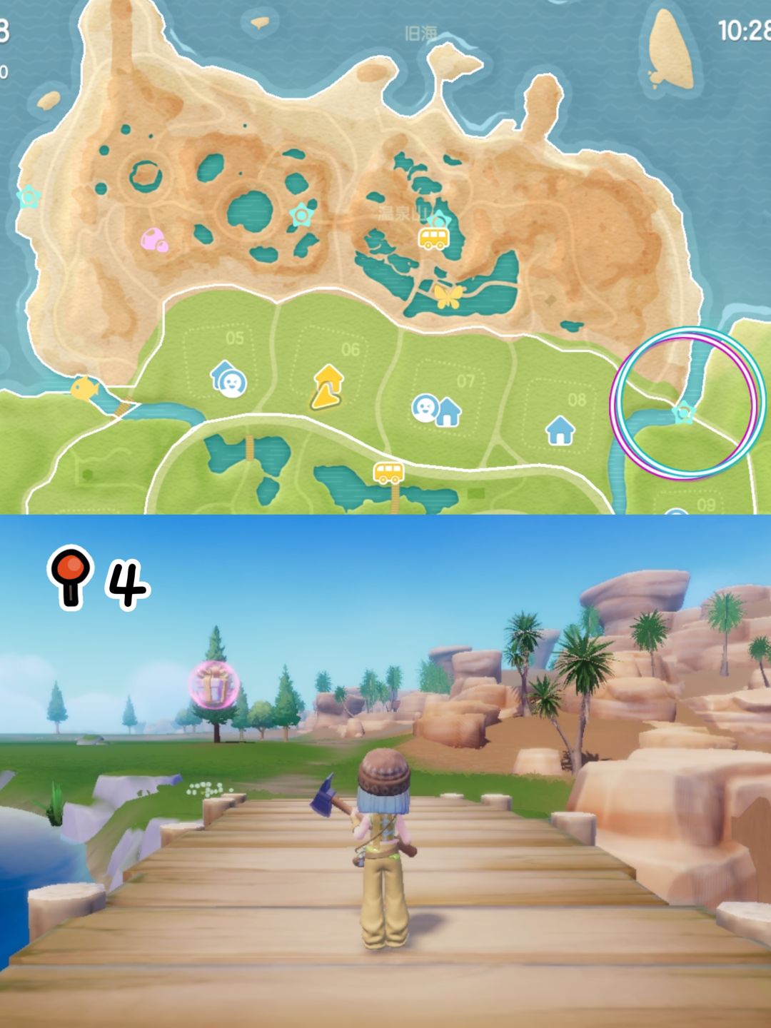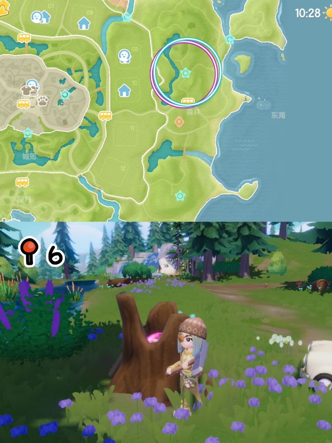 森林:前往森林岛的桥上 森林湖旁树桩里 跳跳台上