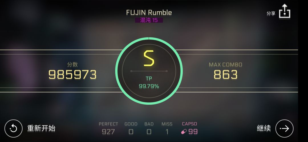 这里是ark。这里提供的是十一打歌活动中的第三档手元。因为在电脑录的视频,我也可以自己确认是不是能看得清结算图,还好,实在不行我还有自己的截图可以自证。也因为是电脑录视频的问题,像素会比较渣而且屏幕还是倒过来的,用格式工厂翻转,转码之后有点音画不同步,见谅啦。