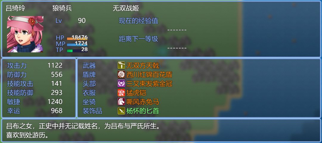 武将简介:吕布之女,正史中并无记载姓名,为吕布与严氏所生。喜欢到处游历。