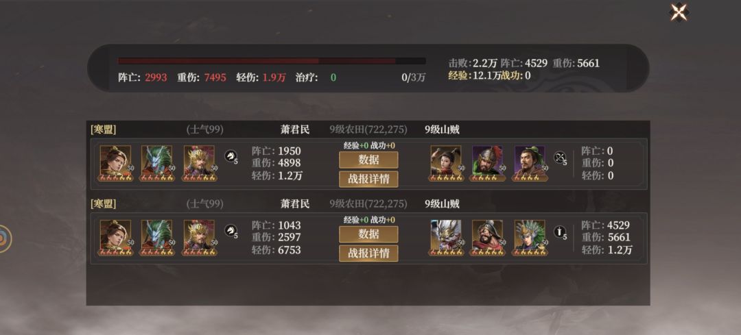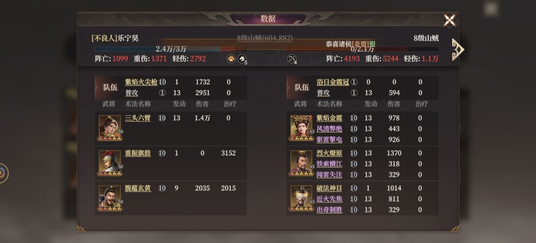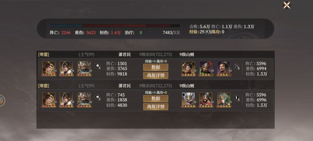 注意!!:因为有些术法是概率发动,有时候开荒可能真的脸非常黑,术法触发概率非常低,导致战斗失败或者战斗结果不理想,大家可以点开战报详细页面查看,请看下面单开九级地参考。