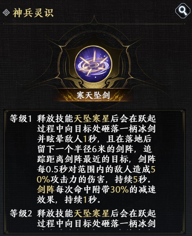 【寒天坠剑】的分支灵识,它们的最高等级均为1级,二者互斥。