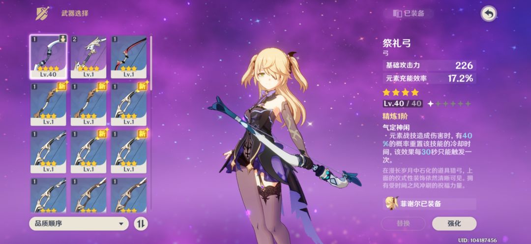 之前我选择用祭礼,然后今天又出了个西风精练了一次,看了看属性,感觉可以用武器被动快速刷大招(但用了这个武器是不是要站场输出?还是开e挂后台也还能回能量?)如果可以挂后台攒能量,然后上场开个大,那么这个西风给小艾咪真心不错,祭礼虽然可以刷新技能,但由于艾咪e技能空档期不是很长,大招攒的也较快,所以提升不大,综合考虑,我是不是给艾咪换个武器比较好?