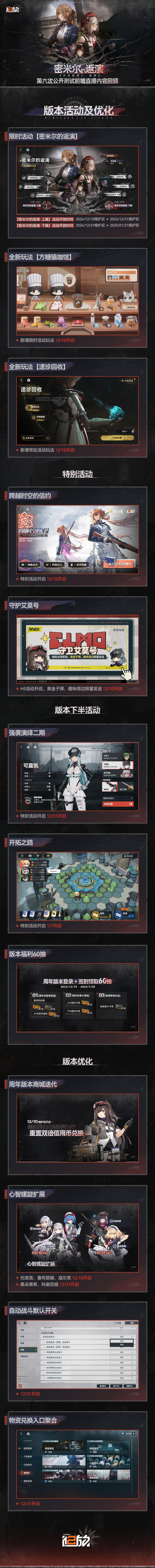 尊敬的指挥官,《少女前线2:追放》周年大型活动【密米尔的返演】第六次公开测试前瞻特别节目已结束,现在为您带来本次直播内容回顾。