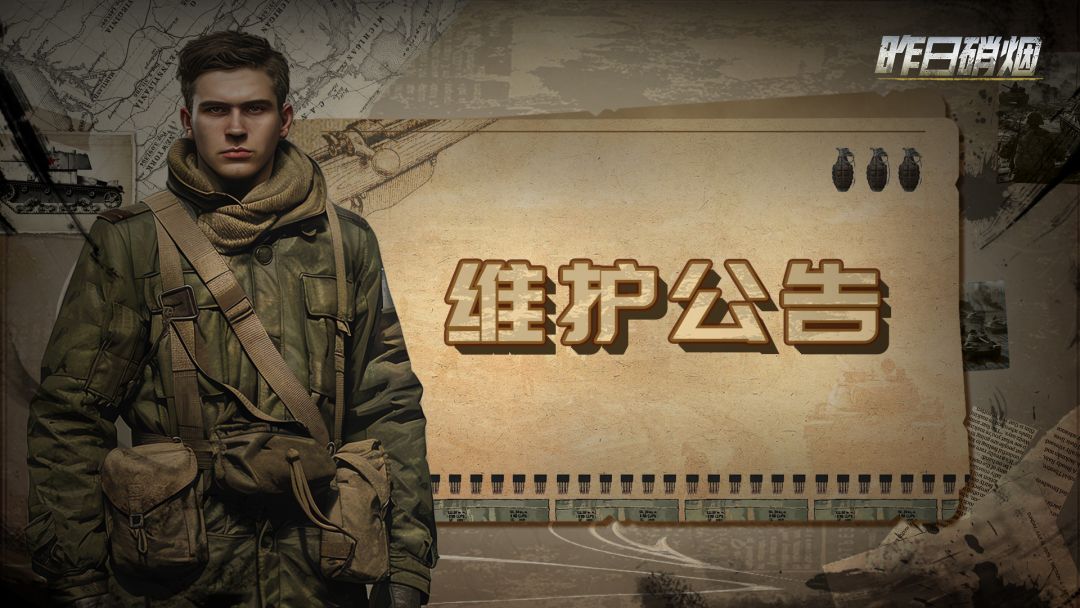 亲爱的士兵们:《昨日硝烟》服务器将于11月30日19:30点开始进行停机更新维护。现已完成,请各位士兵后台重新启动游戏更新后再进入,感谢您的支持和理解。