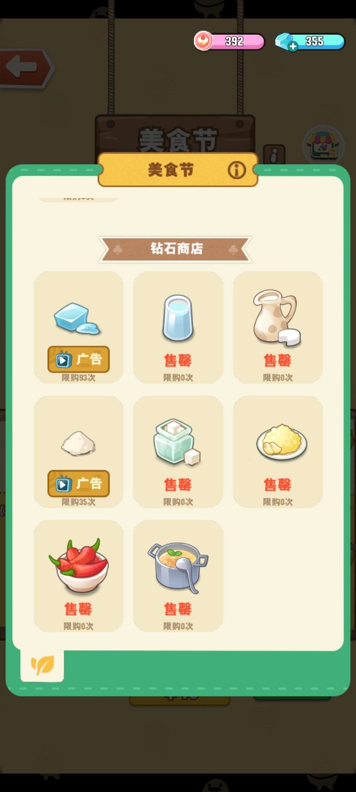 欢乐时光每天2广告2钻石,交食材开了欢乐时光再交;