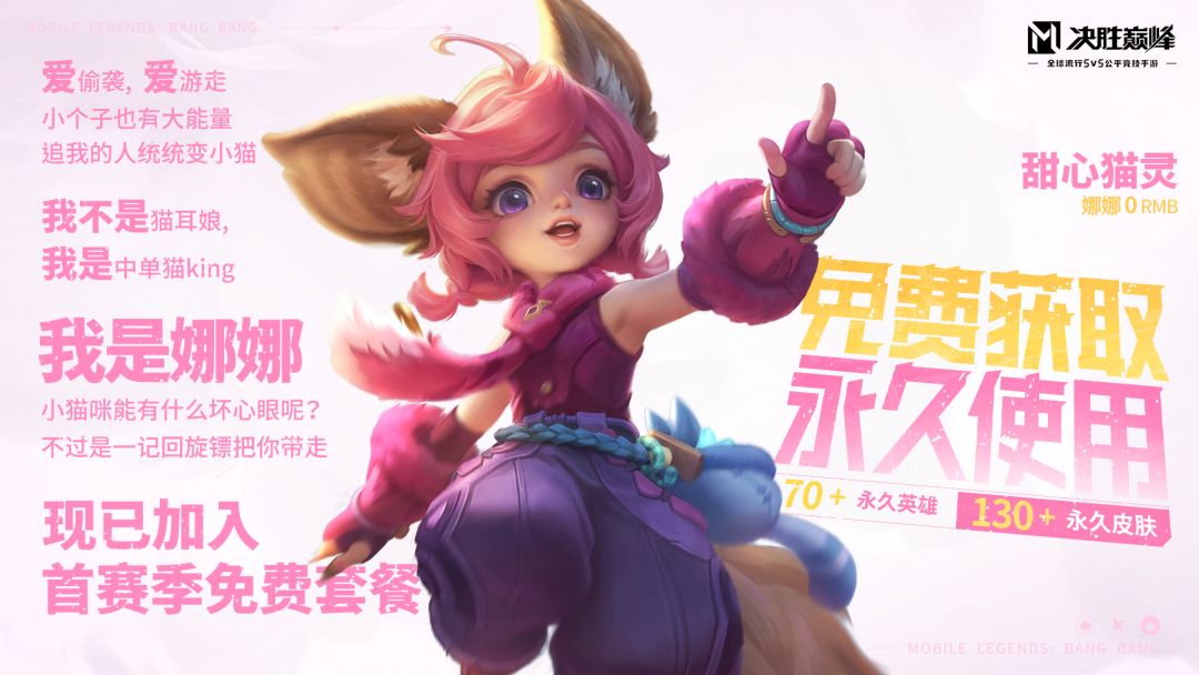 现在预约决胜巅峰,美美享受公测首赛季70+永久英雄、130+永久皮肤,免费获取、永久使用!