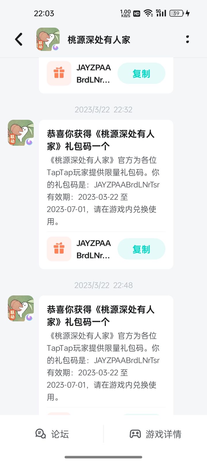 桃桃园深处有人家的一个兑换码,我不玩,搁这儿放着浪费了也怪可惜的。