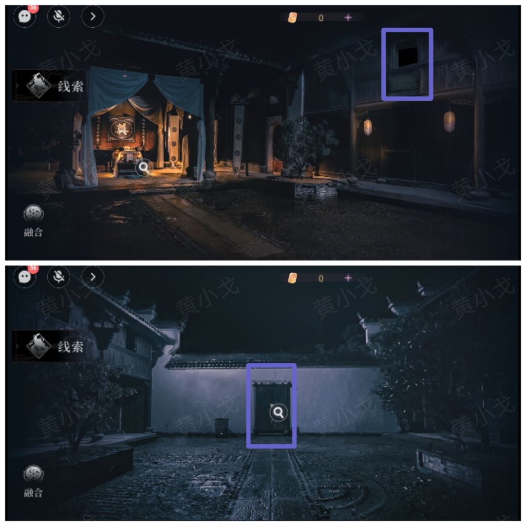 1.在院子里逛逛;尝试离开院子;点击二楼窗户,出现鬼娃娃