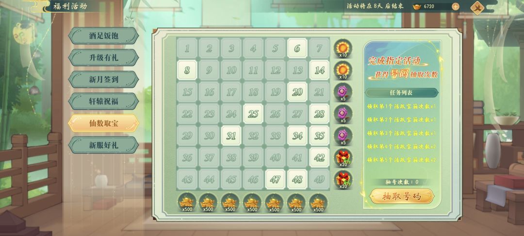 首先是登录即送3500元宝,登录即可在邮箱1500元宝,
