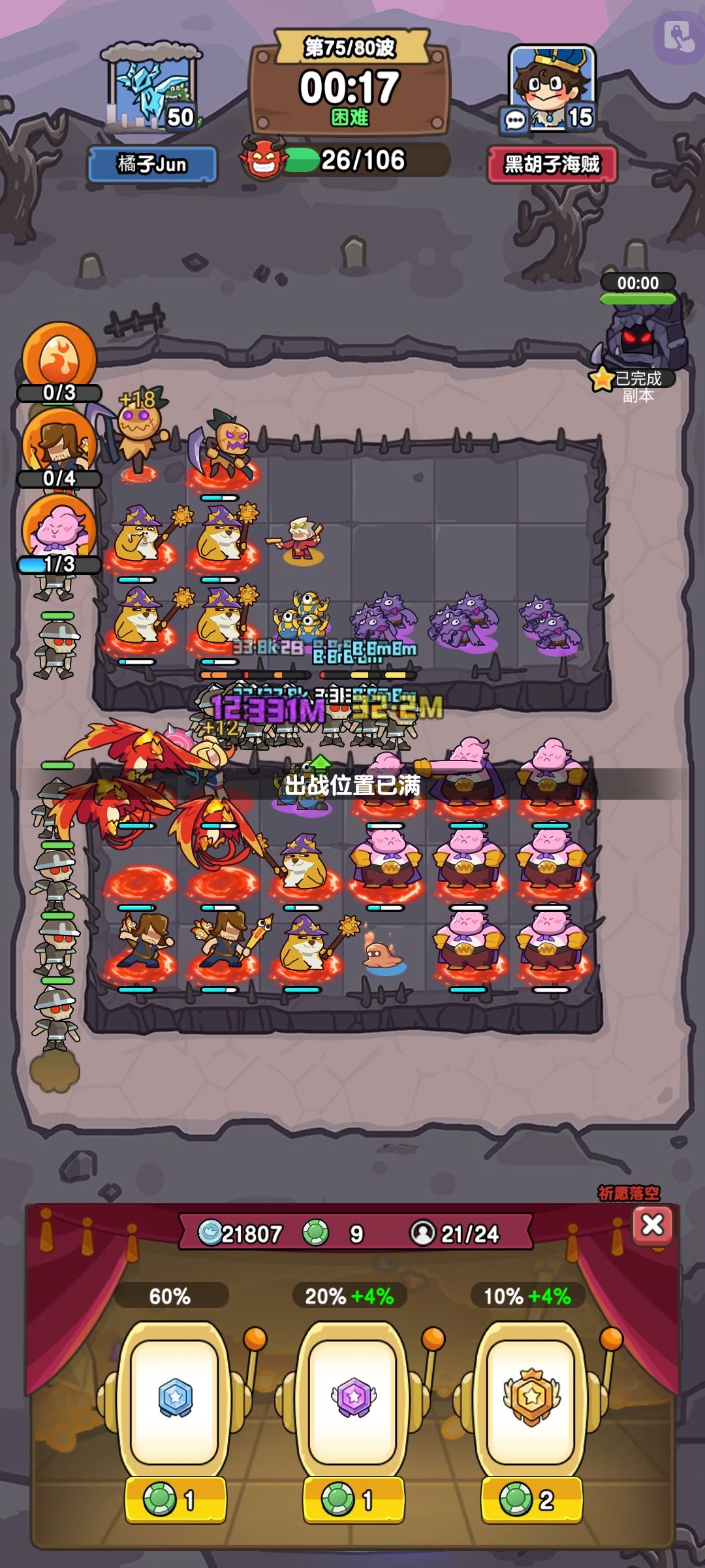 请问这个情况怎么样玩?都不敢召唤这大魔王了。要么能提高下召唤概率。或者说第一只是胖的第二只提升概率。第三只再提升概率。