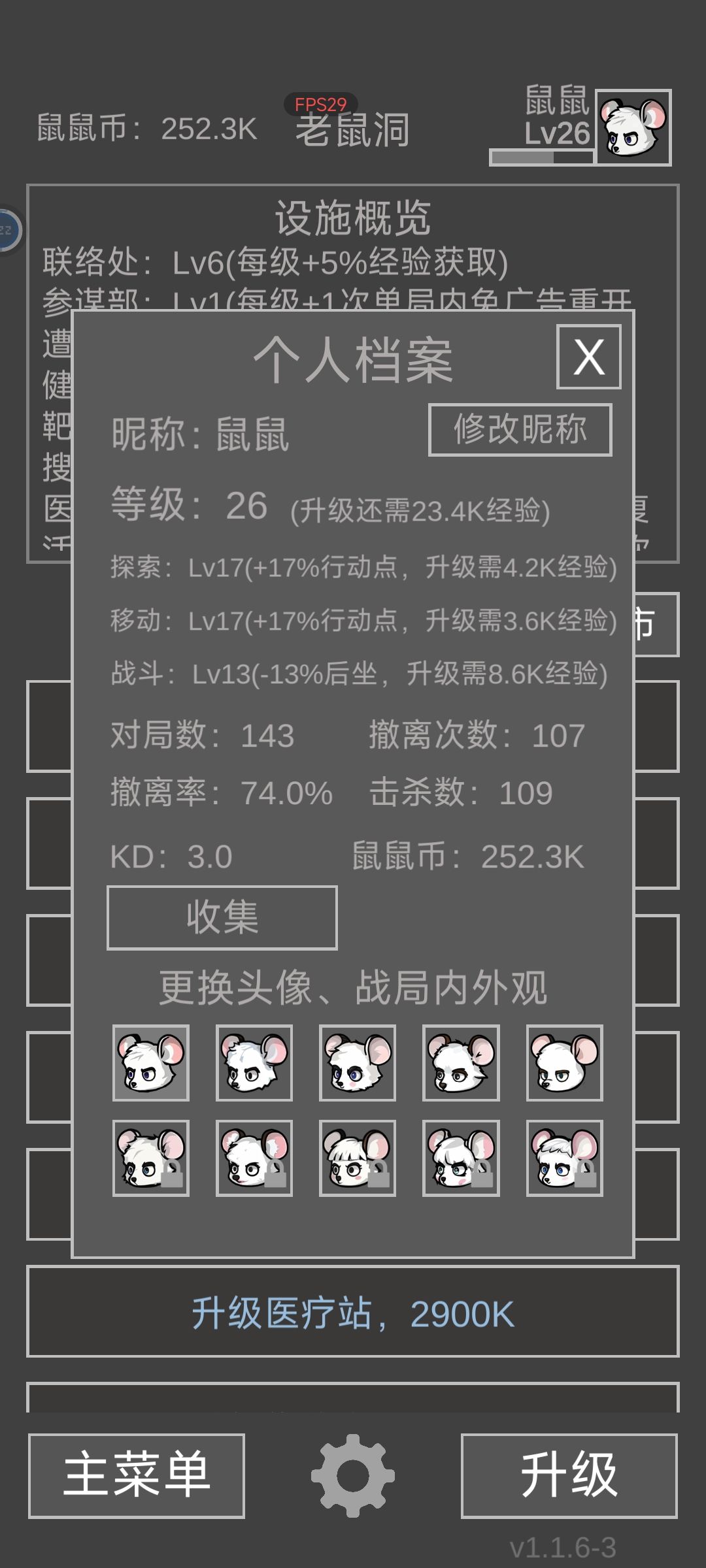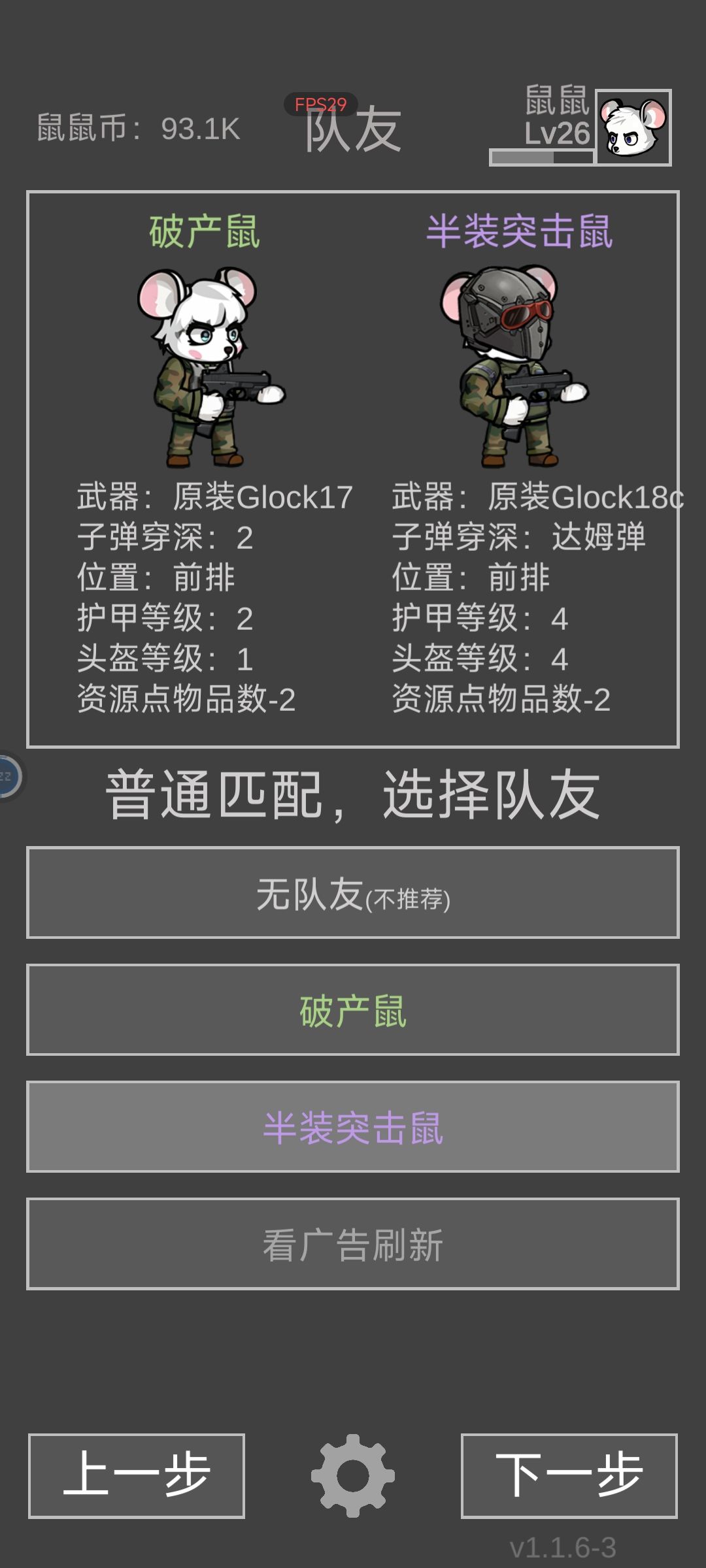 如果没有心仪的队友鼠可以退到选择难度界面再进去,就可以不用看广告刷新队友鼠,不过这样基本刷不出高级队友,如果你的招募处等级不高的话。