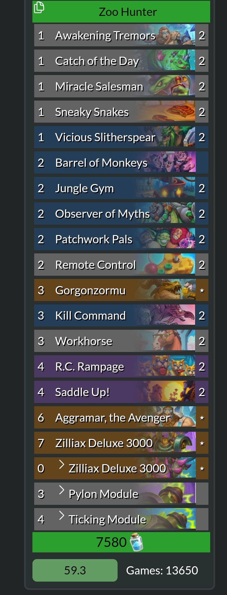3.动物园-依靠蛇,马,猴,蜘蛛和地标配合抢血的卡组,造价低,上手快,效率很高。打不过萨满和DK五五开,其他优势!