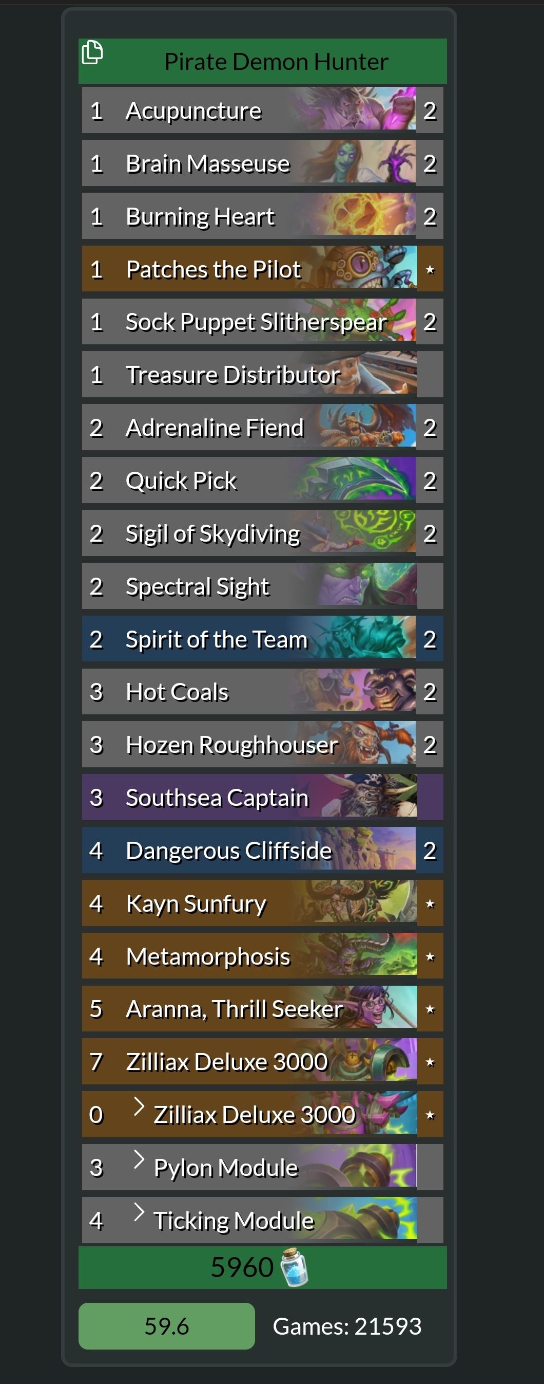 再往后我没排了,大家看头部就好了。出场比例在下图也可以看到,海盗萨7%,接下来就是主菜上卡组,因为不同的人相同职业流派会有多重有差异的构筑,所以还是建议大家看着卡组要做到初步理解,是铺场还是留手打连续技,明白了才好去打。