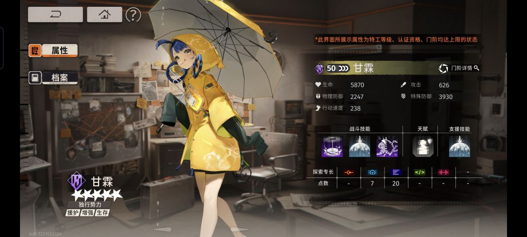 相比之下,伞妹甘霖就很平了。当然,平并不表示她不行,战斗中的护盾至今都超级好用,是整支队伍最值得倚仗的保护伞,平民玩家可以永远盲选她!