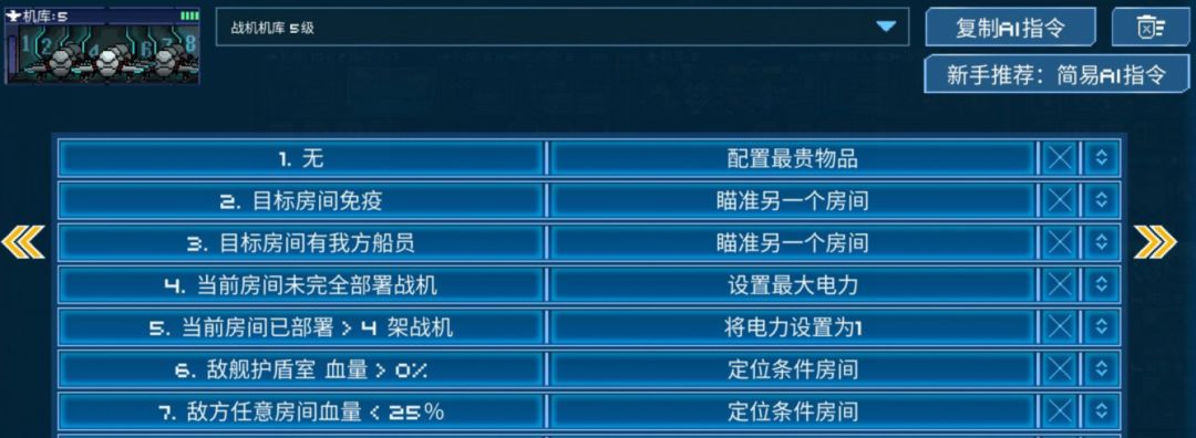机库虽然前期部署较慢,但是有一大优势就是导航属性装备数值远高于其他属性,所以随意找几个导航较高的3星小人,穿上两件导航+11,12的蓝装紫装,站桩机库,就可以有极大的提升。6,7两条ai可以视情况调换顺序。
