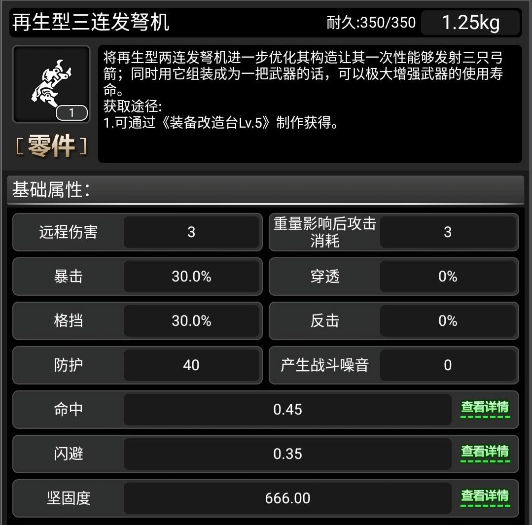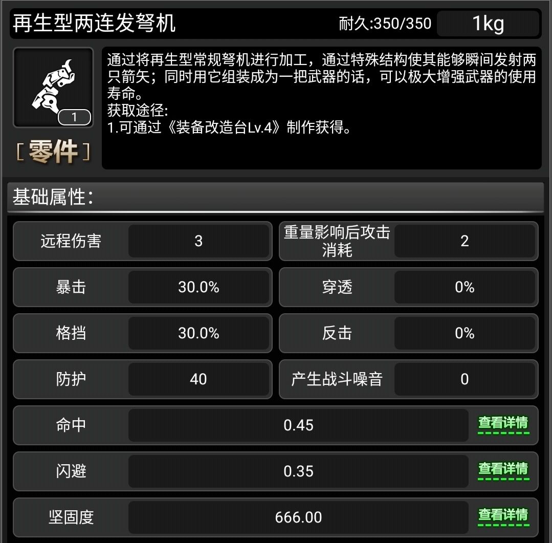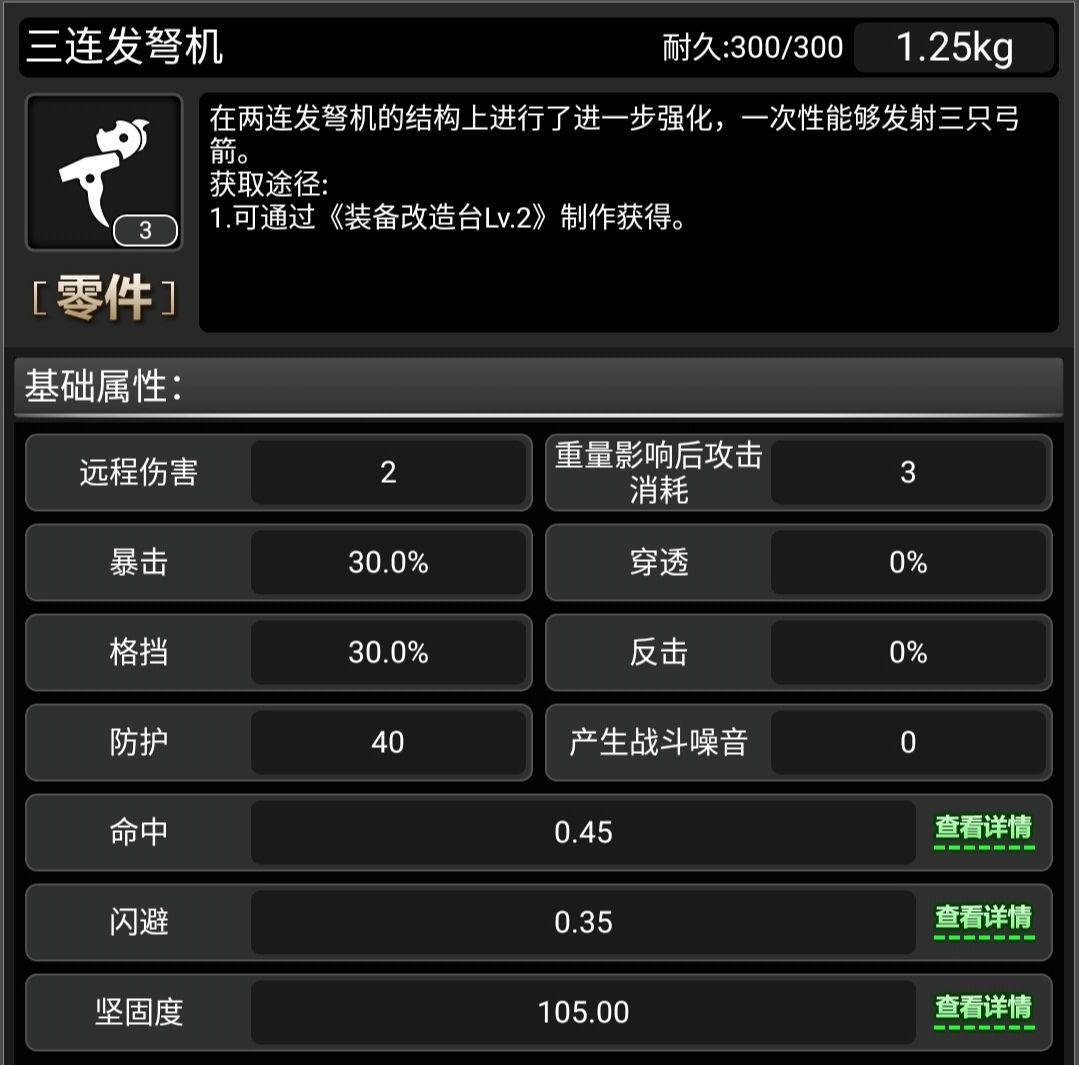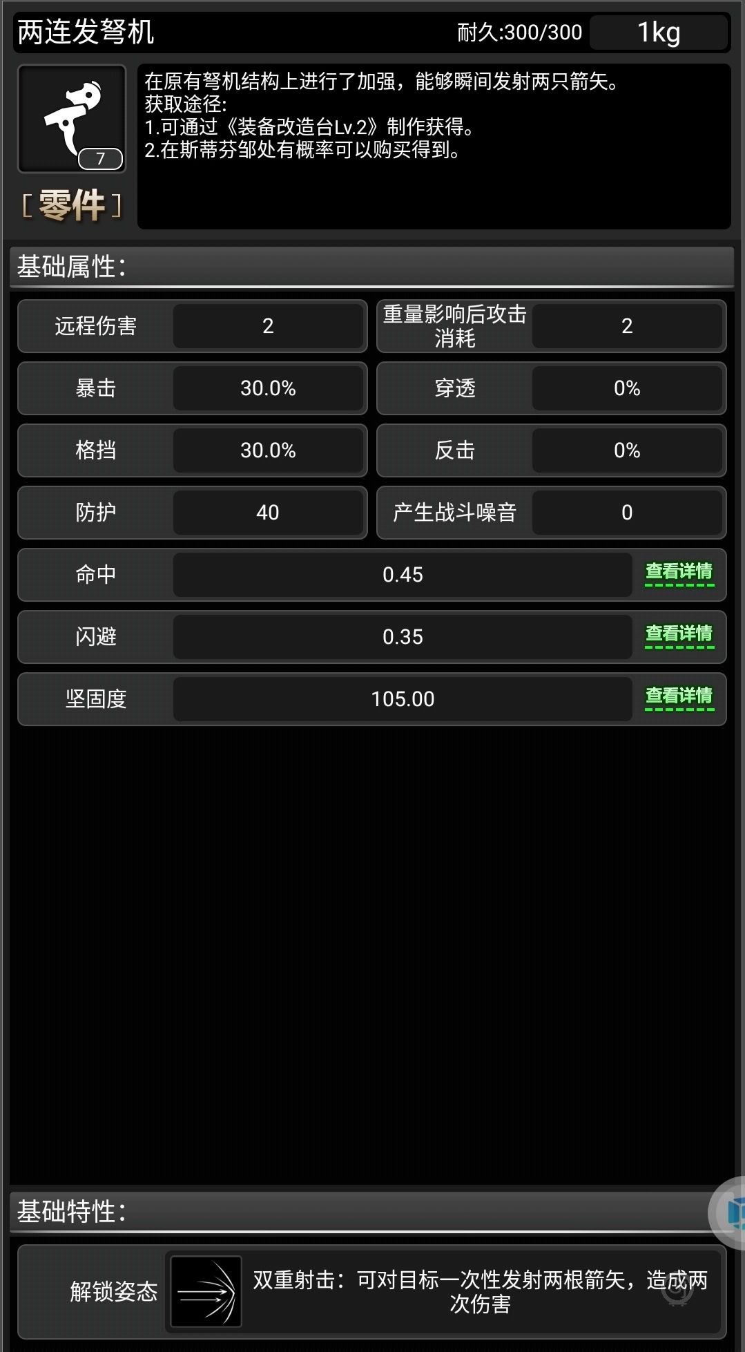 好,先看两连发弩机的属性