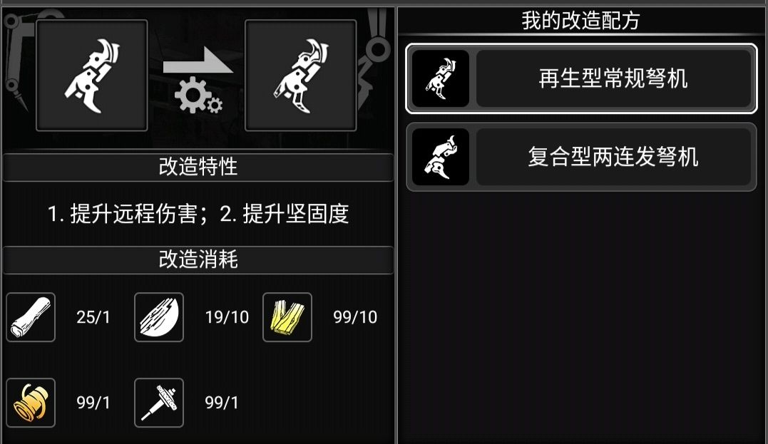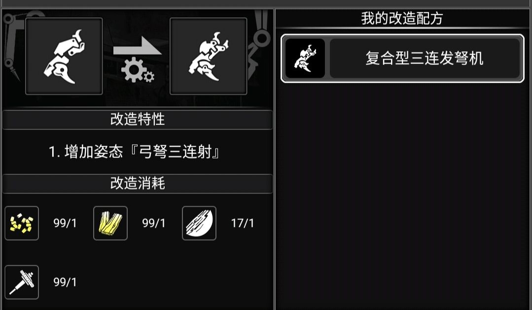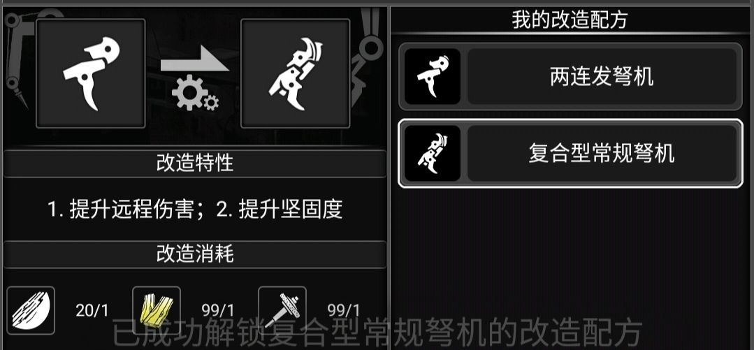 然后咱们回到一开始,也就是它的第二种方案,复合型常规型弩机,是3级改造图纸,这玩意要1—4级图纸来鉴定才会出,或者捡垃圾