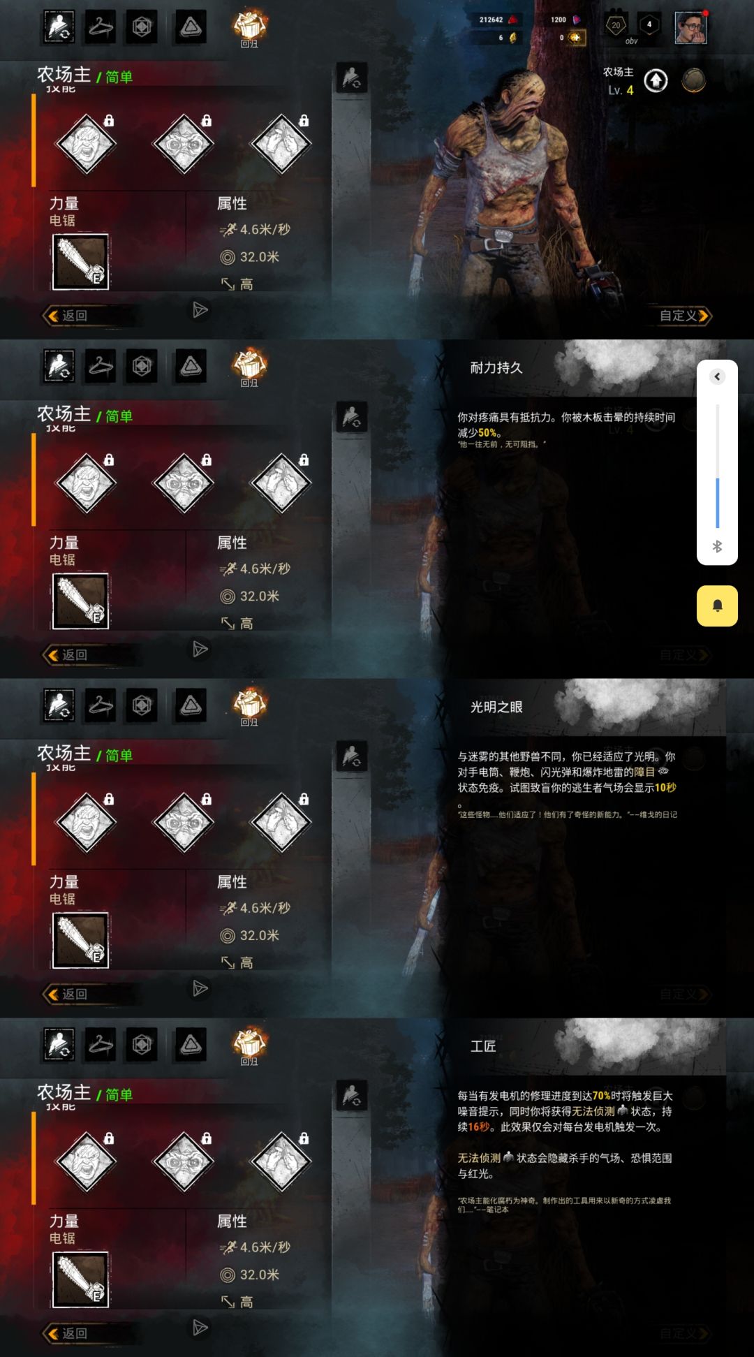 这是黎明杀机里的屠夫农场主,俗称歪嘴战神,被砸眩晕时间减半,免疫控制效果,真不错,而且这个小丑不需要捡零件,零阶就有无限锯,第5里的小丑实名羡慕,不过杀鸡的小丑需要升级,还要花钱开孔装备左右鞋子,不然农场主的拉锯转向会很吃力,类似于破轮的不蓄力的转弯,真的转的特别吃力,必须得升级。