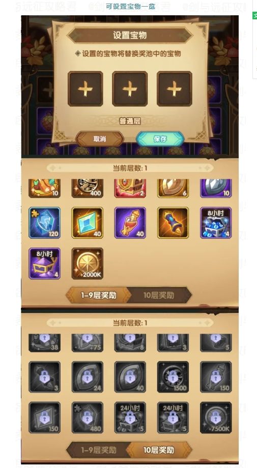 2.每层需要玩家设置三个宝物才能开始寻宝,在寻找到宝物之前玩家可随时对设置的宝物进行更改。