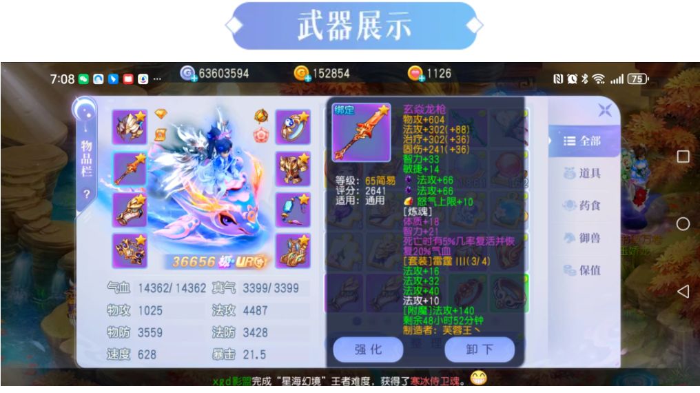 炼魂:炼魂属性方面,意志加14,智力加22,完美适配法系职业的需求。特效“暴击”进一步提升了法术职业的攻击效率。