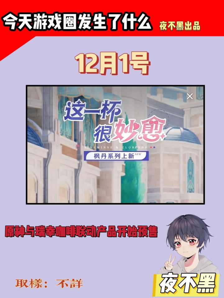 2024年12月1日,原神与瑞幸咖啡联动的产品在