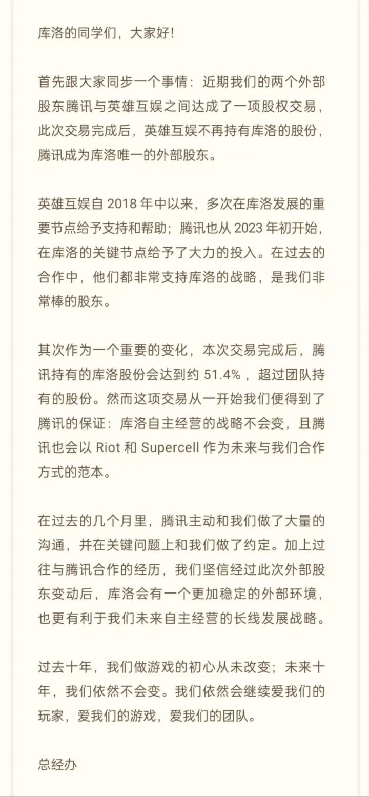 Kuro Games在一份内部备忘录中表示,虽然腾讯的股份现在超过了Kuro Games自己持有的股份,但腾讯向该公司保证,其独立运营的战略将保持不变,类似于腾讯与子公司Riot Games和Supercell的运营方式。
