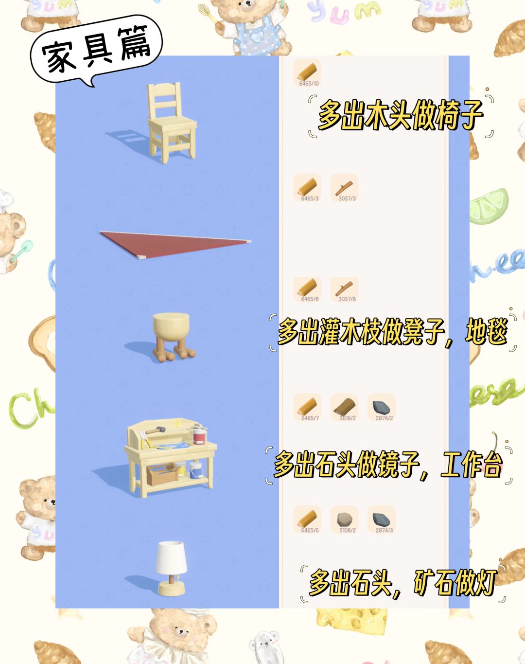 平时大家会有多出来的石头,矿石,木头,灌木,可以适当制作成家具去卖,这样会多赚一些哦