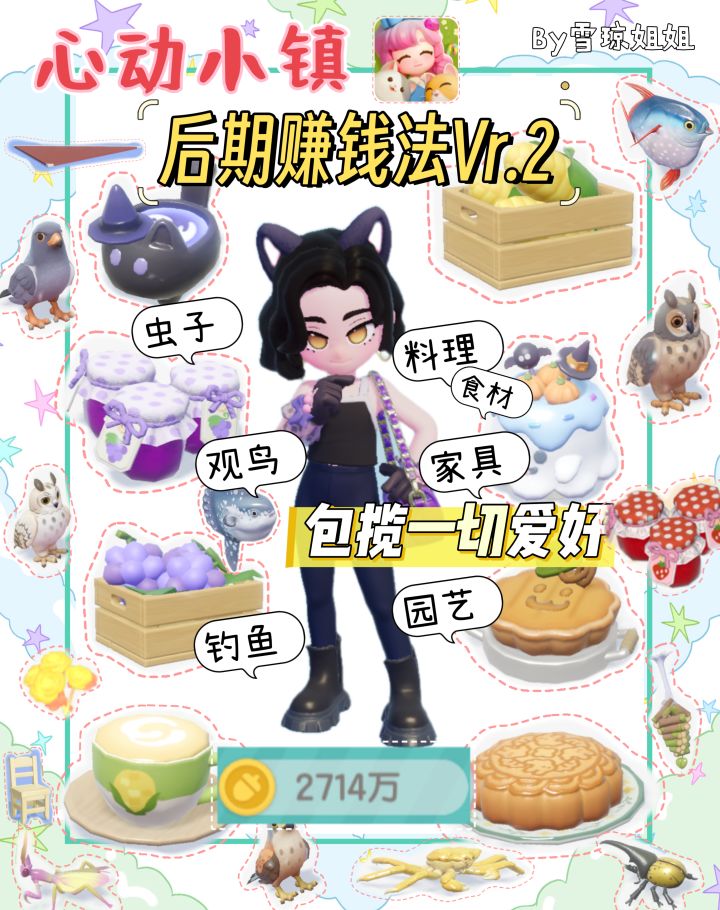 所以写了个综合赚钱法,包揽了料理赚钱,园艺赚钱,钓鱼赚钱,捕虫赚钱,观鸟赚钱,还有家具赚钱~