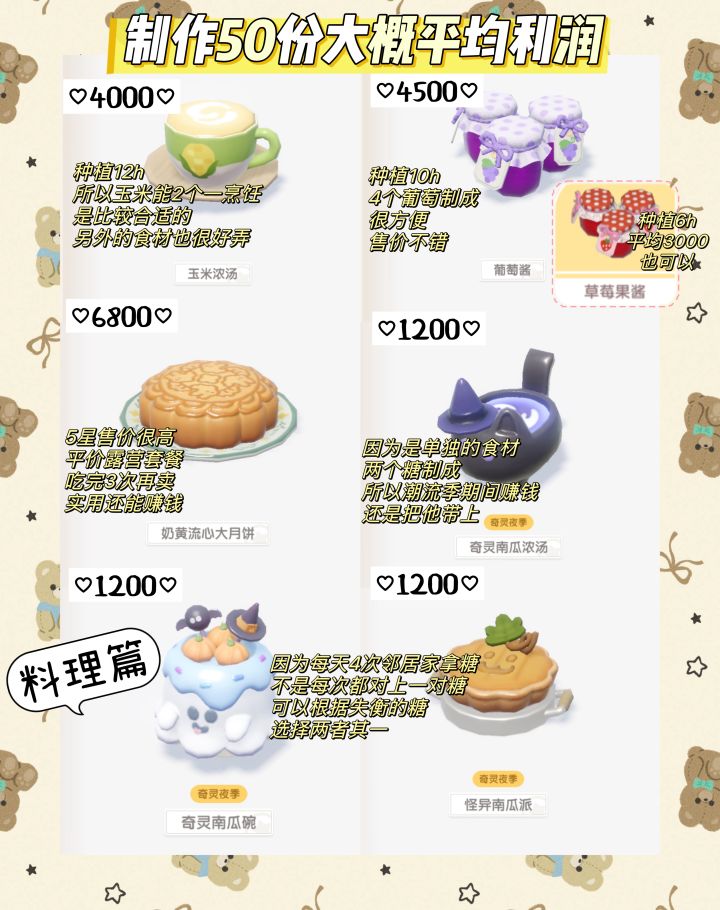至于11级的料理,意难平不用提了,12级等等看了,新的1级料理应该和种植果酱差不多价,还行