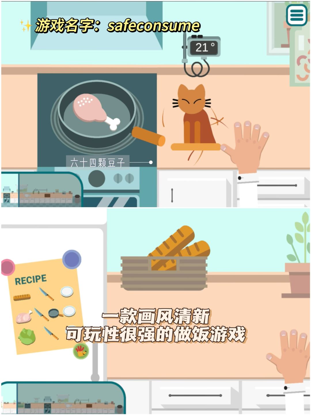 简介:一款做饭游戏,在游戏中我们需要保持干净,勤洗手、洗菜、洗菜板等等。