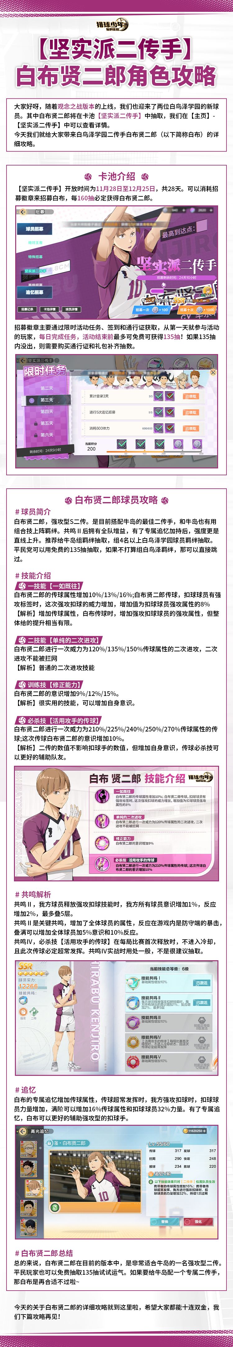 【坚实派二传手】白布贤二郎角色攻略