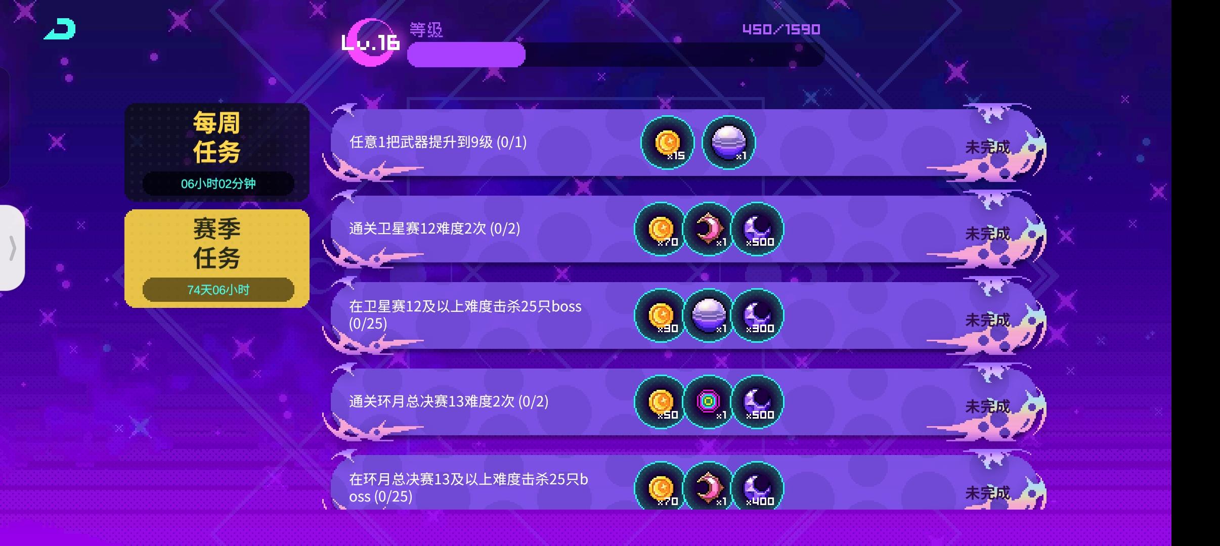 ⑥不想太肝的不用所有部件升满级,环月赛季还剩74天,每周周任务给1400经验值,够用;