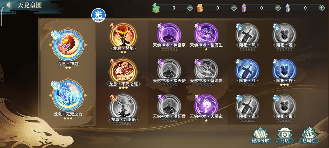 器魂:优先把离垢养到绝3,之后养苍涛也就是伞,平均强化器魂(水精迷径,每天购买750金卷3个藏锋碎片)