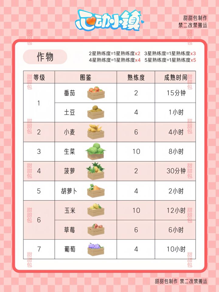 ⭐1-10级的园艺熟练度参考如图(包含作物和花卉)
